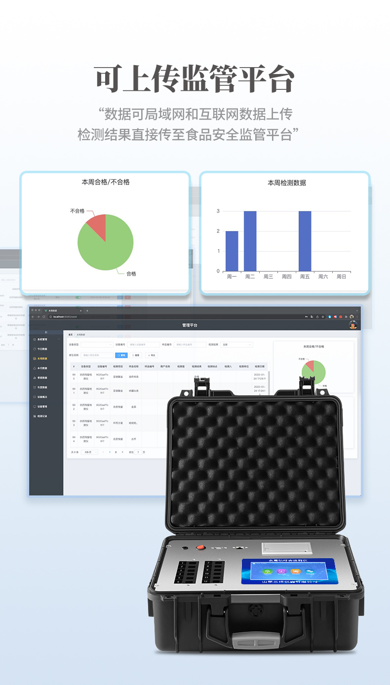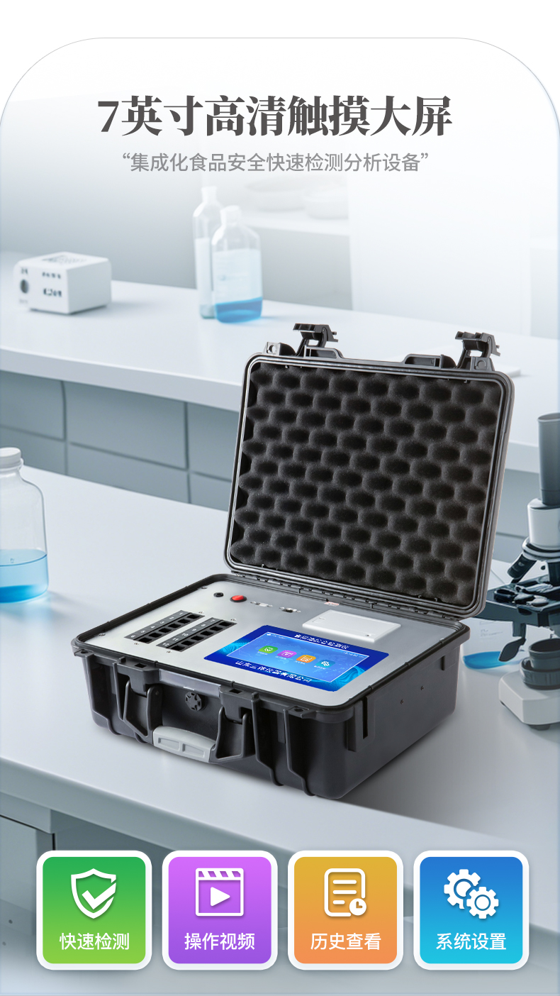 4、一體化便攜式快檢設備,滿足現(xiàn)場及流動檢測使用需求。