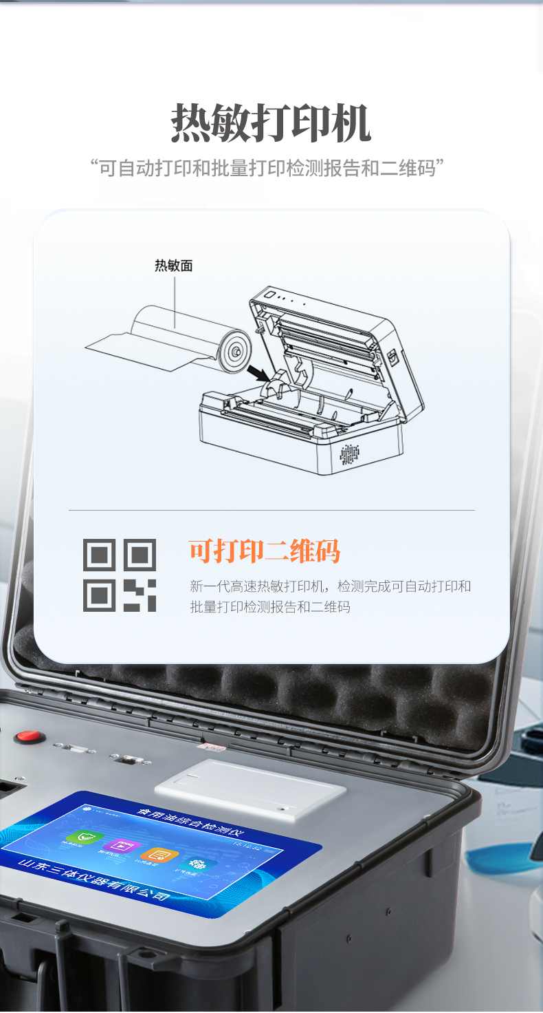 13、嵌入式熱敏打印機,檢測報告可選擇手動打印或者自動打印。