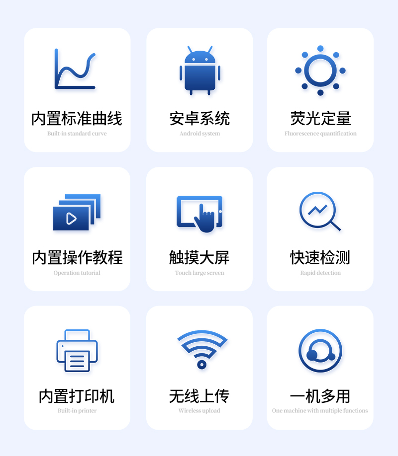 3、快速準確定量:集膠體金快速,酶聯(lián)免疫定量、色譜準確檢測的特點于一身,實現快速準確定量檢測;